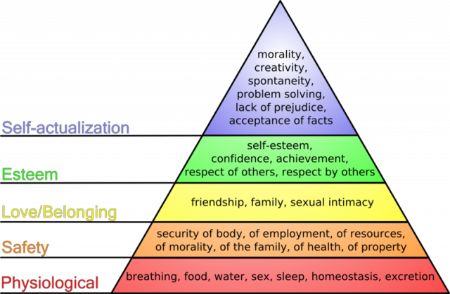 1. In the good years i'm near the top of Maslow's pyramid. Looking for respect, personal growth, a pay rise and the opportunity to further secure my status.